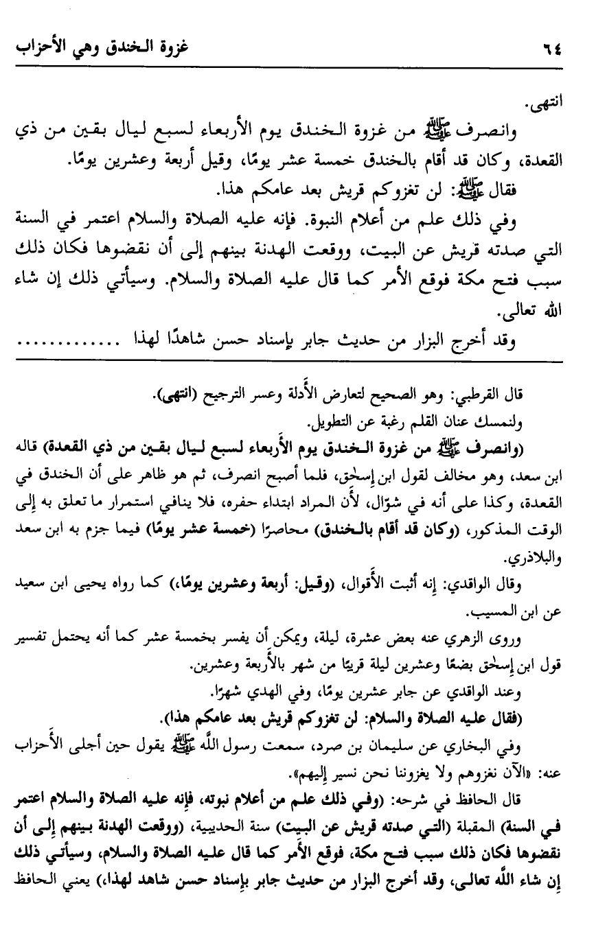 وفي البخاري عن سليمان بن صرد، سمعت رسول الله صلى الله عليه وسلم يقول حين أجلى الأحزاب عنه: "الآن نغزوهم ولا يغزونا نحن نسير إليهم" ".