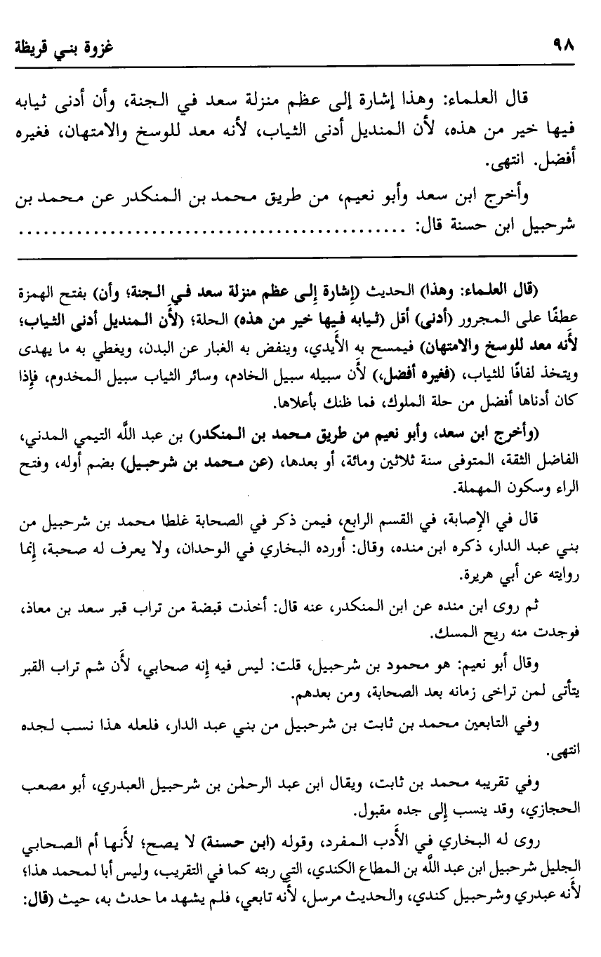 ثم روى ابن منده عن ابن المنكدر، عنه قال: أخذت قبضة من تراب قبر سعد بن معاذ، فوجدت منه ريح المسك.