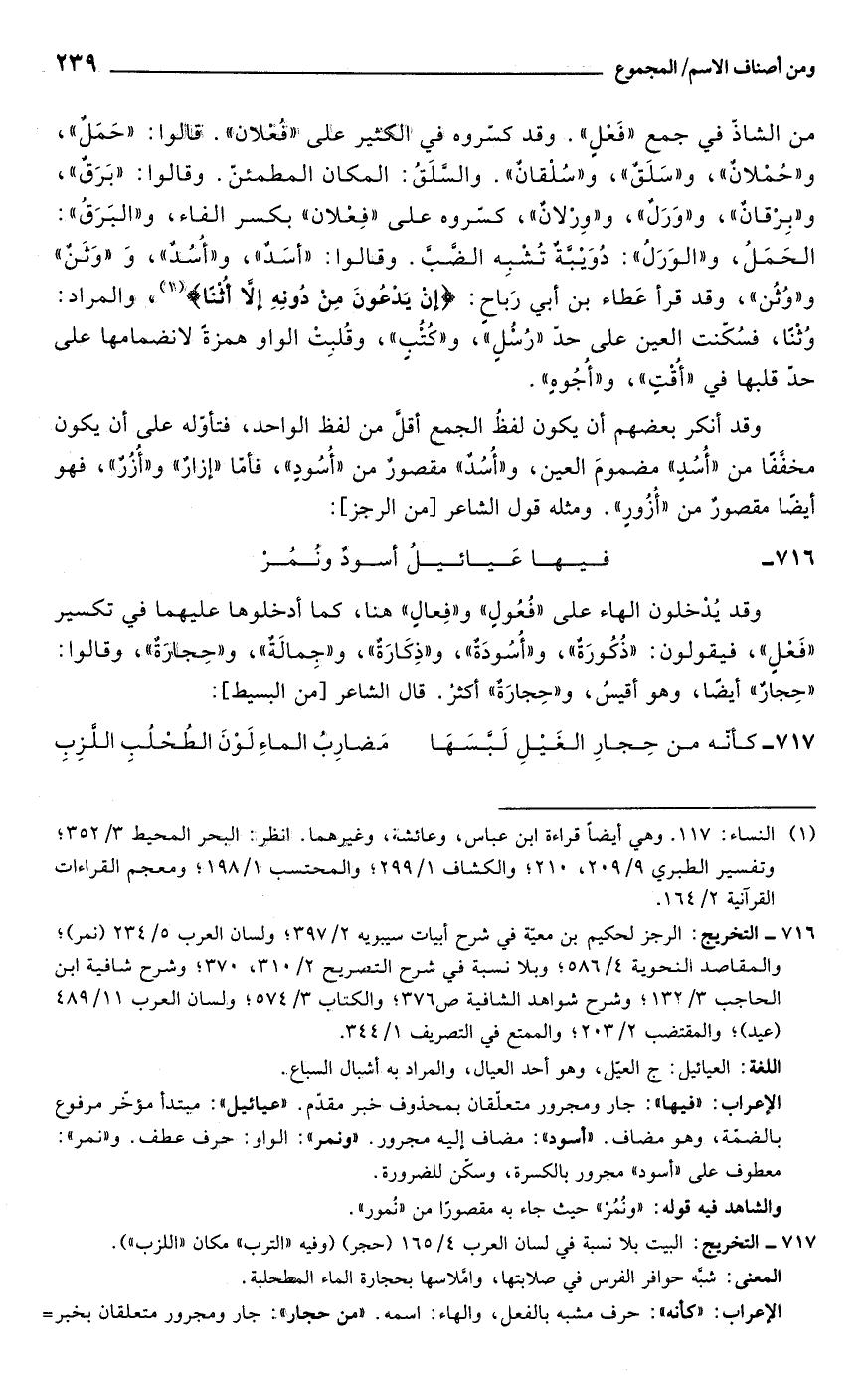 716 - التخريج: الرجز لحكيم بن معيّة في شرح أبيات سيبويه 2/ 397؛ ولسان العرب 5/ 234 (نمر)؛ والمقاصد النحوية 4/ 586؛ وبلا نسبة في شرح التصريح 2/ 310، 370؛ وشرح شافية ابن الحاجب 3/ 132؛ وشرح شواهد الشافية ص 376؛ والكتاب 3/ 574؛ ولسان العرب 11/ 489 (عيد)؛ والمقتضب 2/ 203؛ والممتع في التصريف 1/ 344.