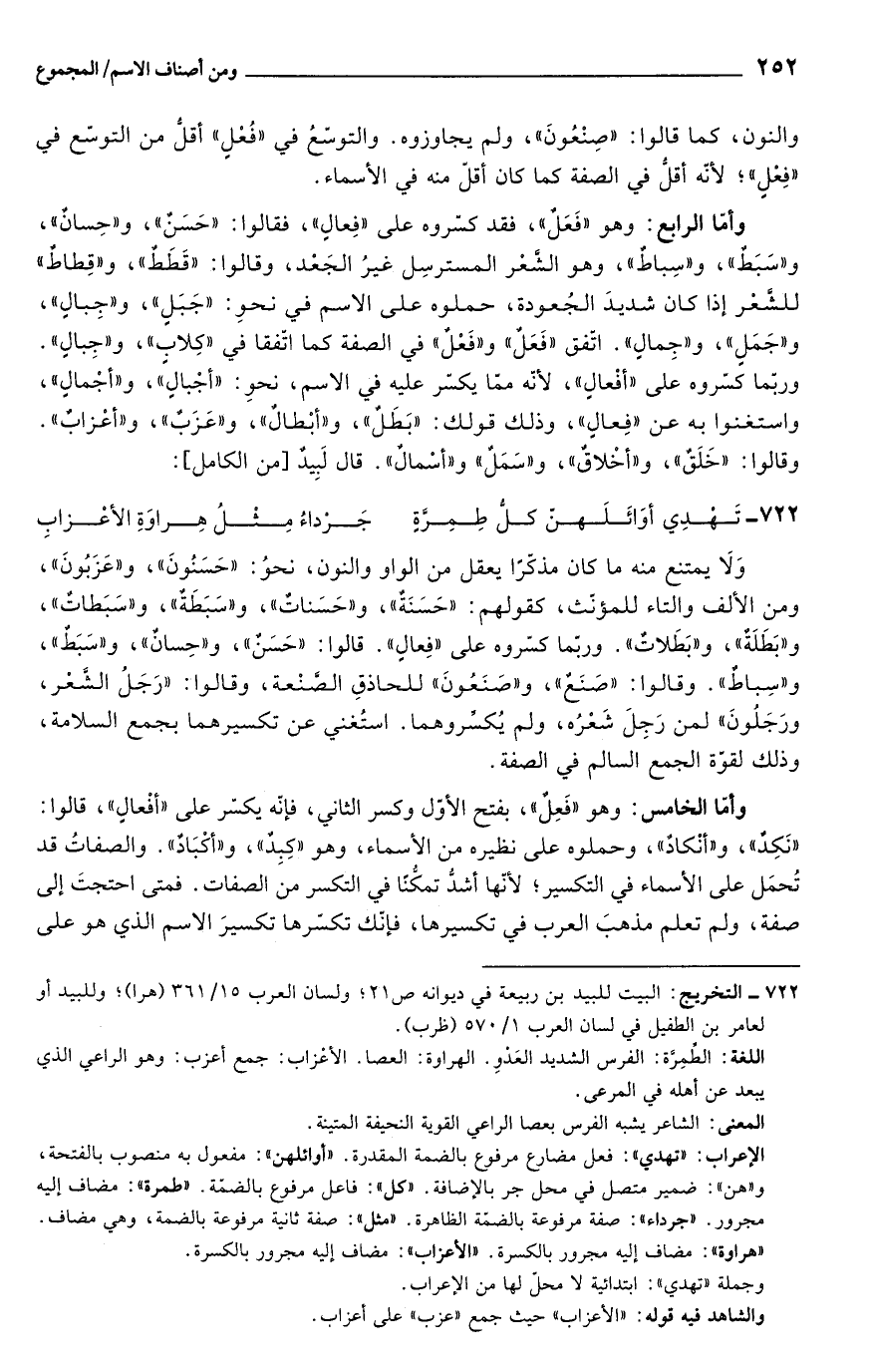 والشاهد فيه قوله: "الأعزاب" حيث جمع "عزب" على أعزاب.
