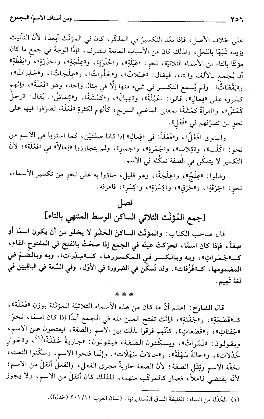 فصل [جمع المؤنث الثلاثي الساكن الوسط المنتهي بالتاء]