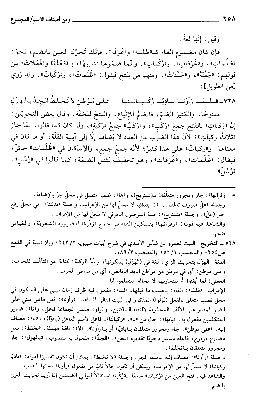والشاهد فيه: فتح العين من "رُكباتنا" جمعًا لـ"رُكْبة" استثقالًا لتوالي الضمتين إذا أريد تحريك العين بالضم.