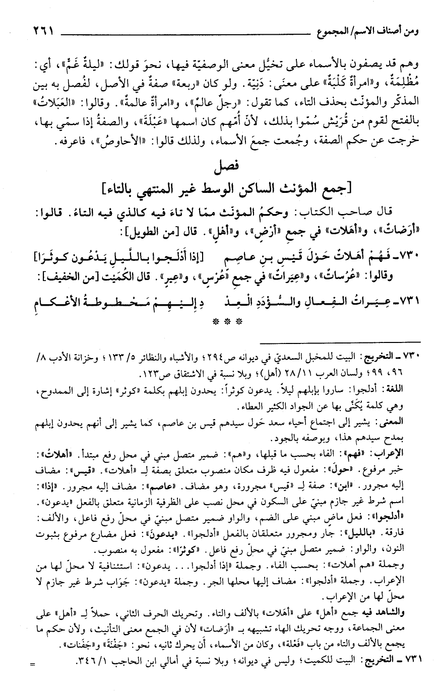 والشاهد فيه جمع "أهل" على "أهَلات" بالألف والتاء. وتحريك الحرف الثاني، حملًا لِـ "أهل" على معنى الجماعة، ووجه تحريك الهاء تشبيهه بـ"أرَضات" لأنّ في الجمع معنى التأنيث، ولأن حكم ما يجمع بالألف والتاء من باب "فَعْلة"، وكان من الأسماء، أَن يحرك ثانيه، نحو: "جَفْنَةَ" و"جَفَنات".