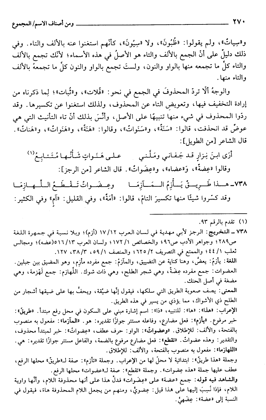 738 - التخريج: الرجز لأبي مهدية في لسان العرب 12/ 17 (أزم)؛ وبلا نسبة في جمهرة اللغة ص 289؛ وجواهر الأدب ص 96؛ والخصائص 1/ 172؛ ولسان العرب 13/ 516 (عضه)؛ ومجالس ثعلب 1/ 44؛ والممتع في التصريف 2/ 625؛ والمنصف 1/ 59، 3/ 38، 127.