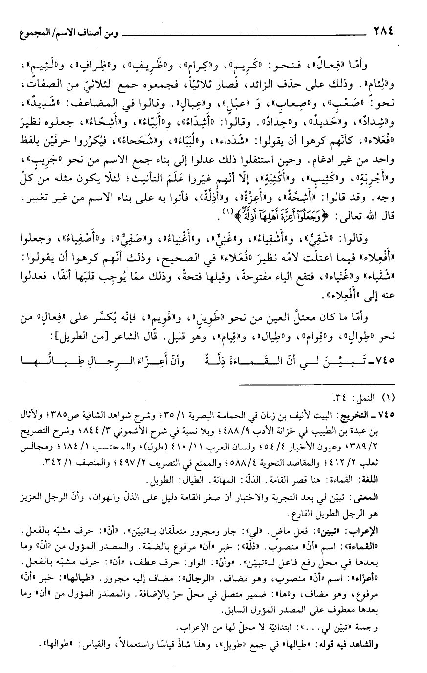 745 - التخريج: البيت لأنيف بن زبان في الحماسة البصرية 1/ 35؛ وشرح شواهد الشافية ص 385؛ ولأثال بن عبدة بن الطبيب في خزانة الأدب 9/ 488؛ وبلا نسبة في شرح الأشموني 3/ 844؛ وشرح التصريح 2/ 389؛ وعيون الأخبار 4/ 54؛ ولسان العرب 11/ 410 (طول)؛ والمحتسب 1/ 184؛ ومجالس ثعلب 2/ 412؛ والمقاصد النحوية 4/ 588؛ والممتع في التصريف 2/ 497؛ والمنصف 1/ 342.