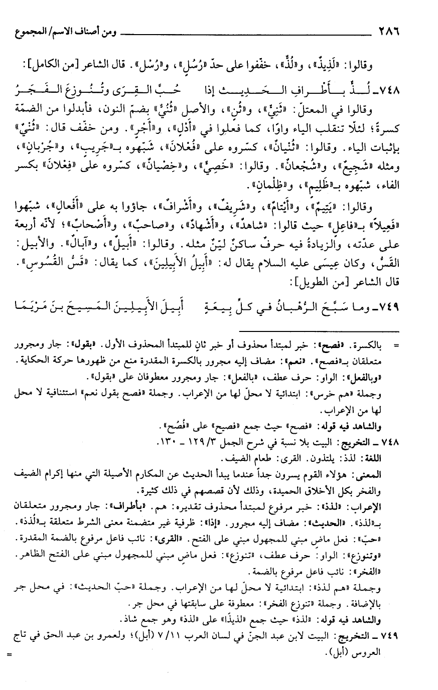 749 - التخريج: البيت لابن عبد الجنّ في لسان العرب 11/ 7 (أبل)؛ ولعمرو بن عبد الحق تاج العروس (بل).