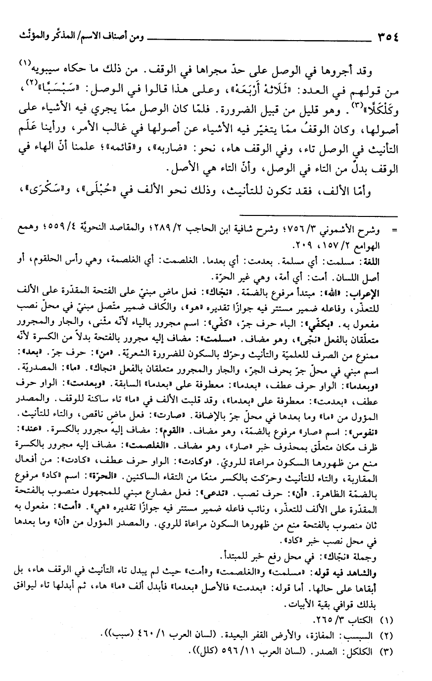 اللغة: مسلمت: أي مسلمة. بعدمت: أي بعدما. الغلصمت: أي الغلصمة، وهي رأس الحلقوم، أو أصل اللسان. أمت: أي أمة، وهي غير الحرّة.