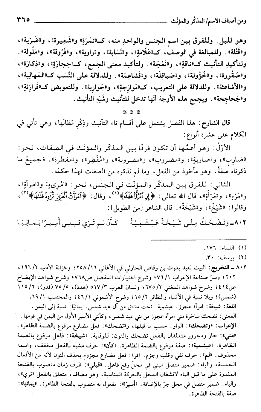 قال الشارح: هذا الفصل يشتمل على أقسام تاء التأنيث وذِكْرِ مَظانّها، وهي تأتي في الكلام على عشرة أنواع: