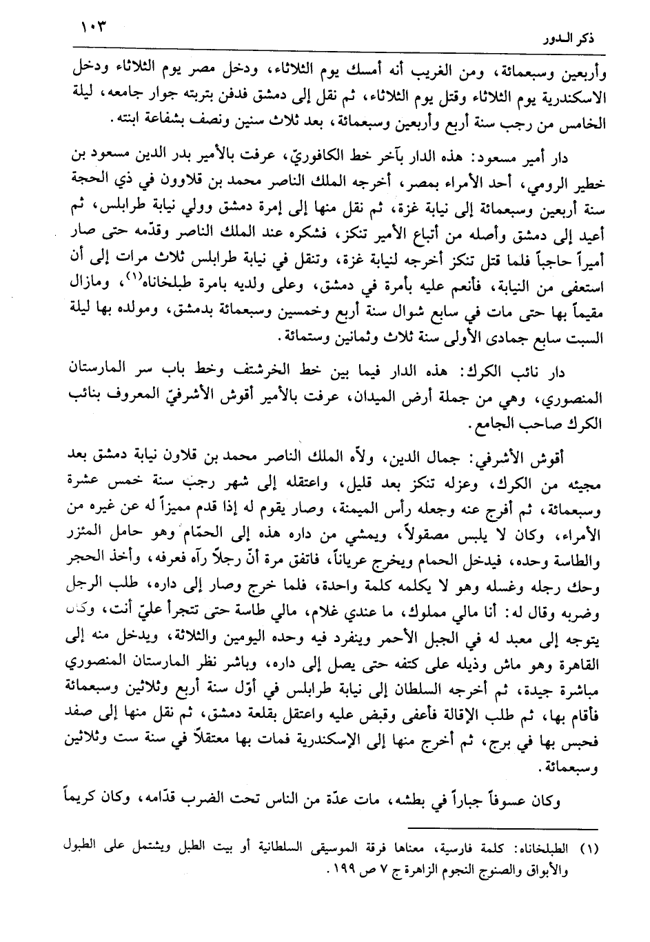 دار نائب الكرك: هذه الدار فيما بين خط الخرشتف وخط باب سر المارستان المنصوري، وهي من جملة أرض الميدان، عرفت بالأمير أقوش الأشرفيّ المعروف بنائب الكرك صاحب الجامع.
