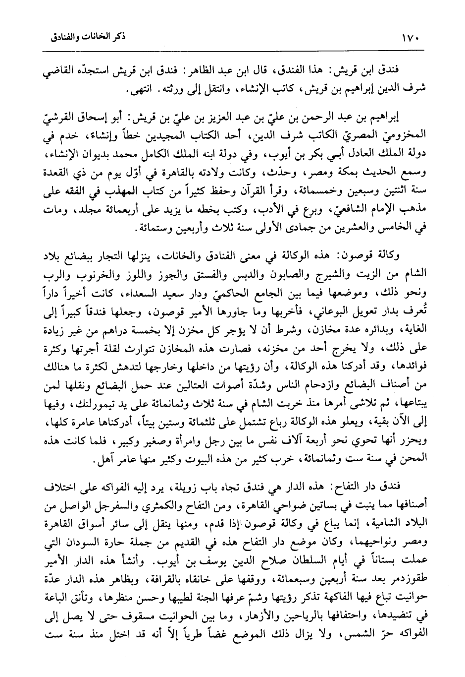 فندق ابن قريش: هذا الفندق، قال ابن عبد الظاهر: فندق ابن قريش استجدّه القاضي شرف الدين إبراهيم بن قريش، كاتب الإنشاء، وانتقل إلى ورثته. انتهى.