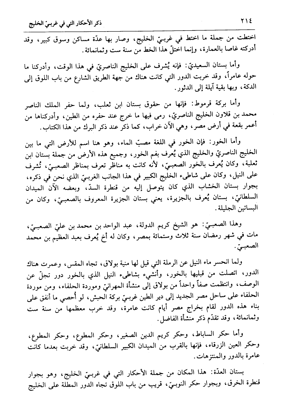 اختطت من جملة ما اختط في غربيّ الخليج، وصار بها عدّة مساكن وسوق كبير، وقد أدركته غاصا بالعمارة، وإنما اختلّ هذا الخط من سنة ست وثمانمائة.
