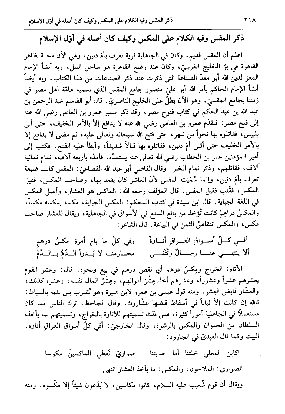 أفي كلّ أسواق العراق أتاوة ... وفي كلّ ما باع امرؤ مكس درهم