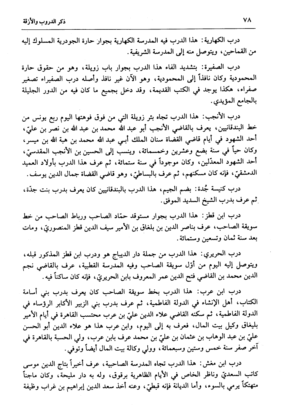 درب الكهارية: هذا الدرب فيه المدرسة الكهارية بجوار حارة الجودرية المسلوك إليه من القماحين، ويتوصل منه إلى المدرسة الشريفية.