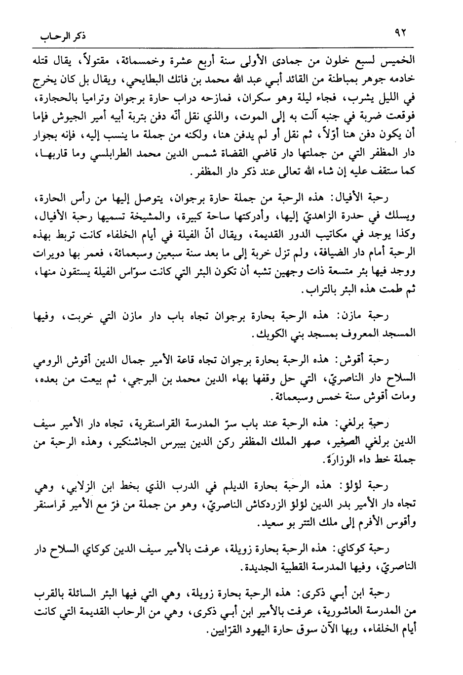 رحبة برلغي: هذه الرحبة عند باب سرّ المدرسة القراسنقرية، تجاه دار الأمير سيف الدين برلغي الصغير، صهر الملك المظفر ركن الدين بيبرس الجاشنكير، وهذه الرحبة من جملة خط داء الوزارة.