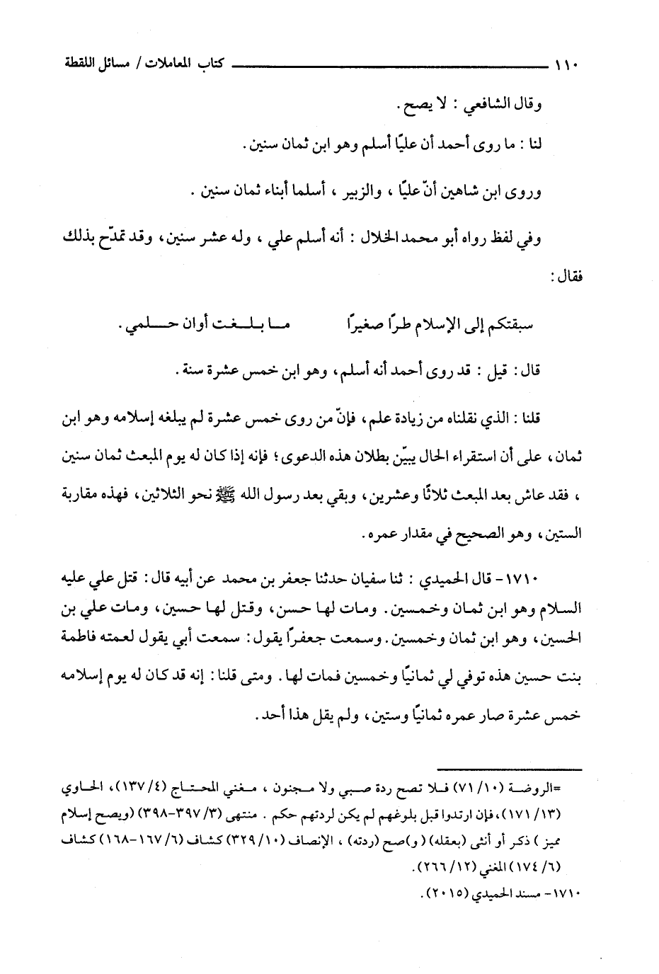 ( سبقتكم إلى الإسلام طراً صغيراً ** ما بلغت أوان حلمي ) .