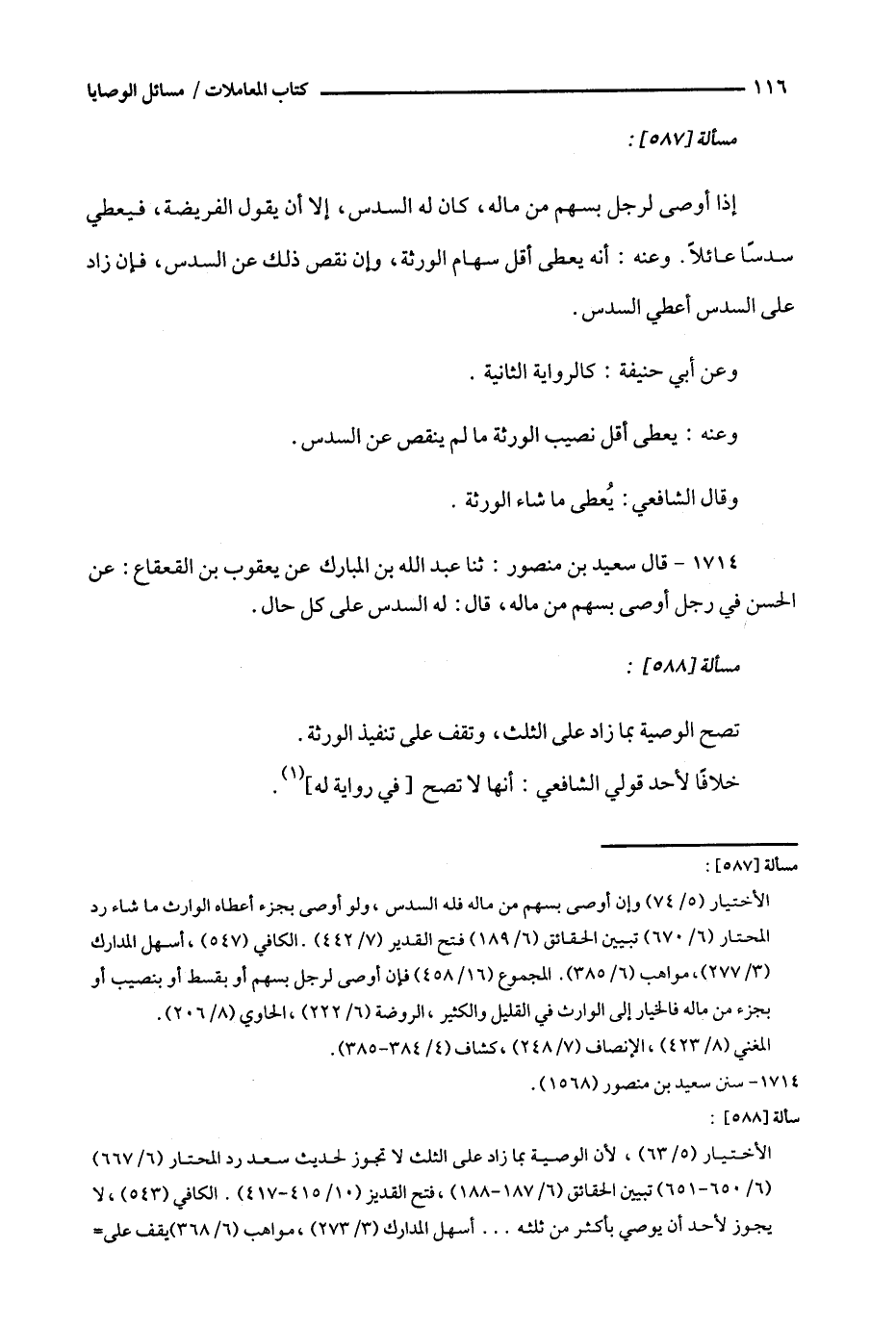 1714 - قال سعيد بن منصور : ثنا عبد الله بن المبارك عن يعقوب بن القعقاع : عن الحسن في رجل أوصى بسهم من ماله ، قال : له السدس على كل حال .