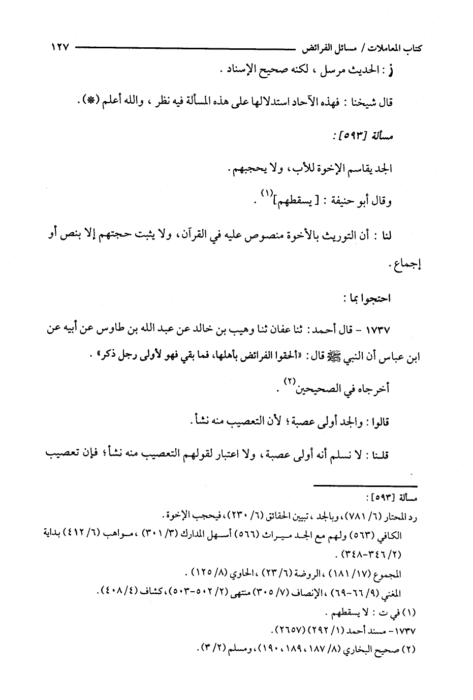 الجد يقاسم الإخوة للأب ، ولا يحجبهم .