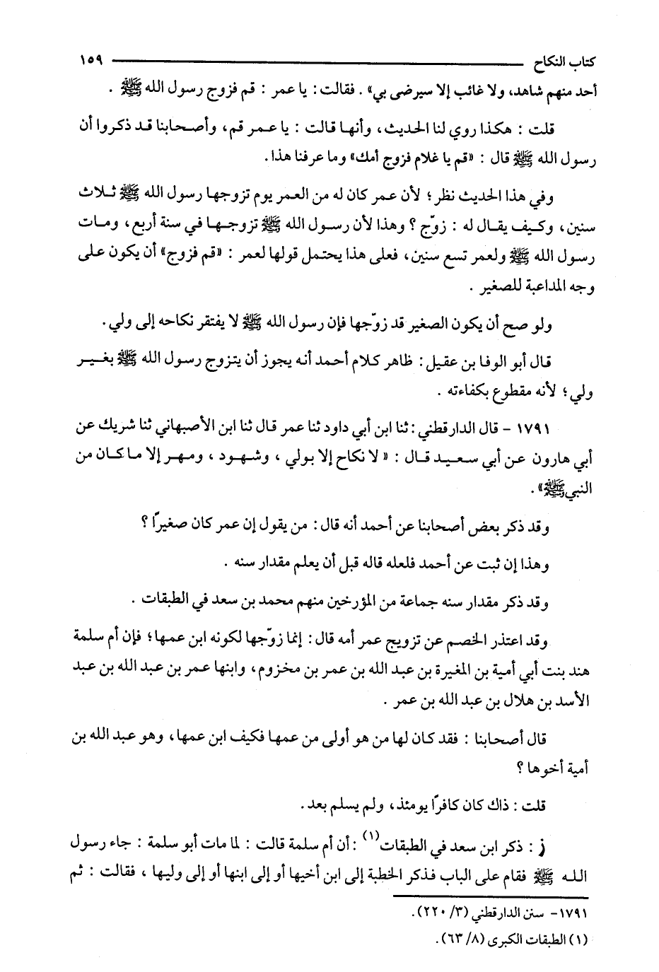 وفي هذا الحديث نظر ؛ لأن عمر كان له من العمر يوم تزوجها رسول الله ثلاث سنين ، وكيف يقال له : زوّج ؟ وهذا لأن رسول الله تزوجها في سنة أربع ، ومات رسول الله ولعمر تسع سنين ، فعلى هذا يحتمل قولها لعمر : ' قم فزوج ' أن يكون على وجه المداعبة للصغير .