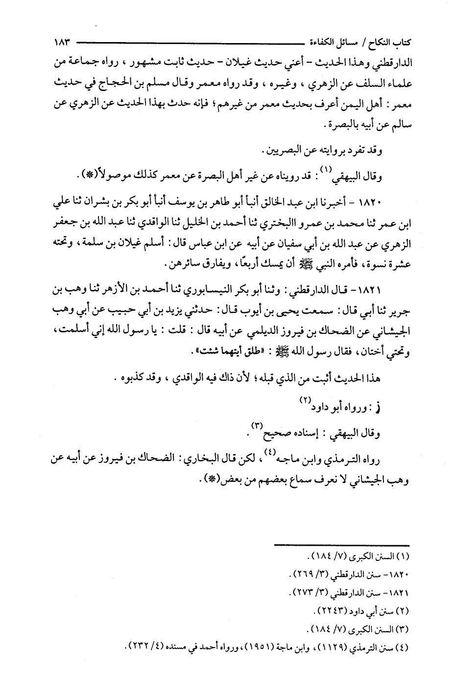 1820 - أخبرنا ابن عبد الخالق أنبأ أبو طاهر بن يوسف أنبأ أبو بكر بن بشران ثنا علي ابن عمر ثنا محمد بن عمرو البختري ثنا أحمد بن الخليل ثنا الواقدي ثنا عبد الله بن جعفر الزهري عن عبد الله بن أبي سفيان عن أبيه عن ابن عباس قال : أسلم غيلان بن سلمة ، وتحته عشرة نسوة ، فأمره النبي أن يمسك أربعاً ، ويفارق سائرهن .