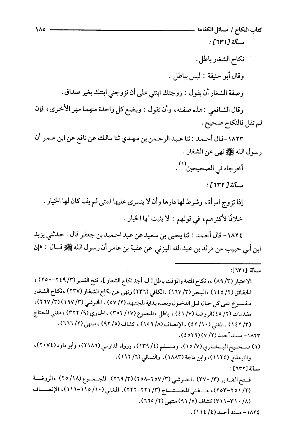 1823 - قال أحمد : ثنا عبد الرحمن بن مهدي ثنا مالك عن نافع عن ابن عمر أن رسول الله نهى عن الشغار .