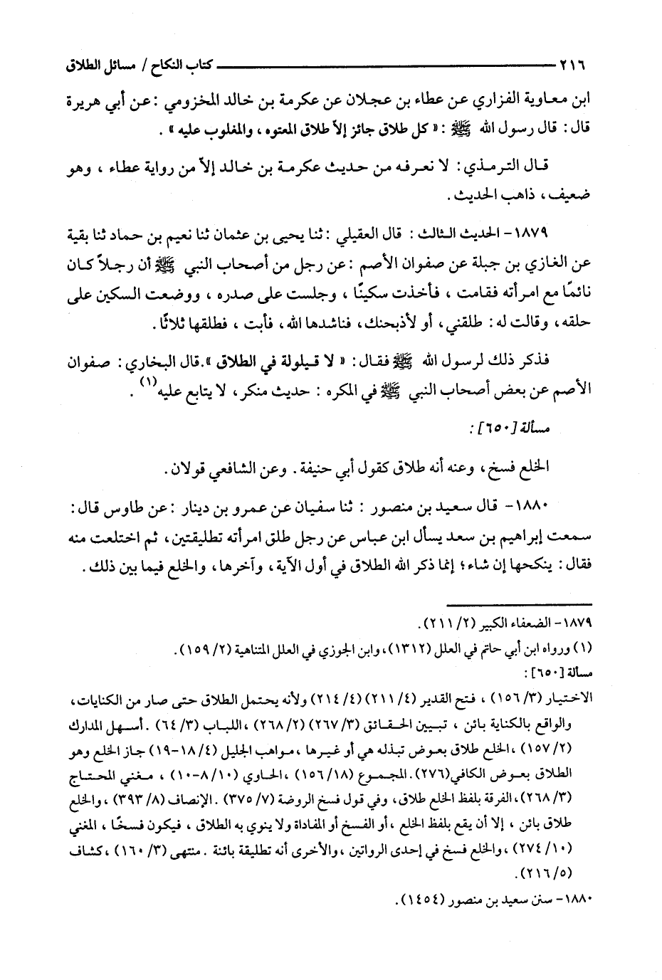 1880 - قال سعيد بن منصور : ثنا سفيان عن عمرو بن دينار : عن طاوس قال : سمعت إبراهيم بن سعد يسأل ابن عباس عن رجل طلق امرأته تطليقتين ، ثم اختلعت منه فقال : ينكحها إن شاء ؛ إنما ذكر الله الطلاق في أول الآية ، وآخرها ، والخلع فيما بين ذلك .