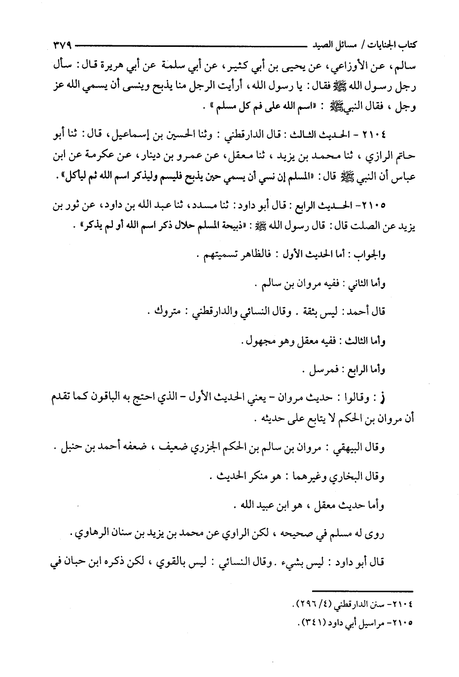 2105 - الحديث الرابع : قال أبو داود : ثنا مسدد ، ثنا عبد الله بن داود ، عن ثور بن يزيد عن الصلت قال : قال رسول الله : ' ذبيحة المسلم حلال ذكر اسم الله أو لم يذكر ' .