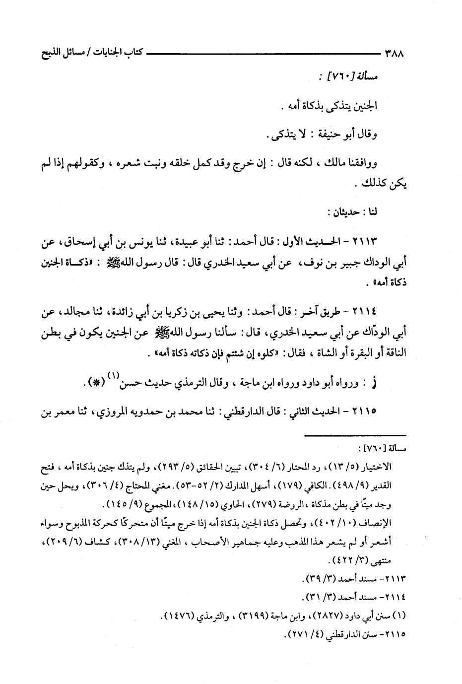 2114 - طريق آخر : قال أحمد : وثنا يحيى بن زكريا بن أبي زائدة ، ثنا مجالد ، عن أبي الودّاك عن أبي سعيد الخدري ، قال : سألنا رسول الله عن الجنين يكون في بطن الناقة أو البقرة أو الشاة ، فقال : ' كلوه إن شئتم فإن ذكاته ذكاة أمه ' .