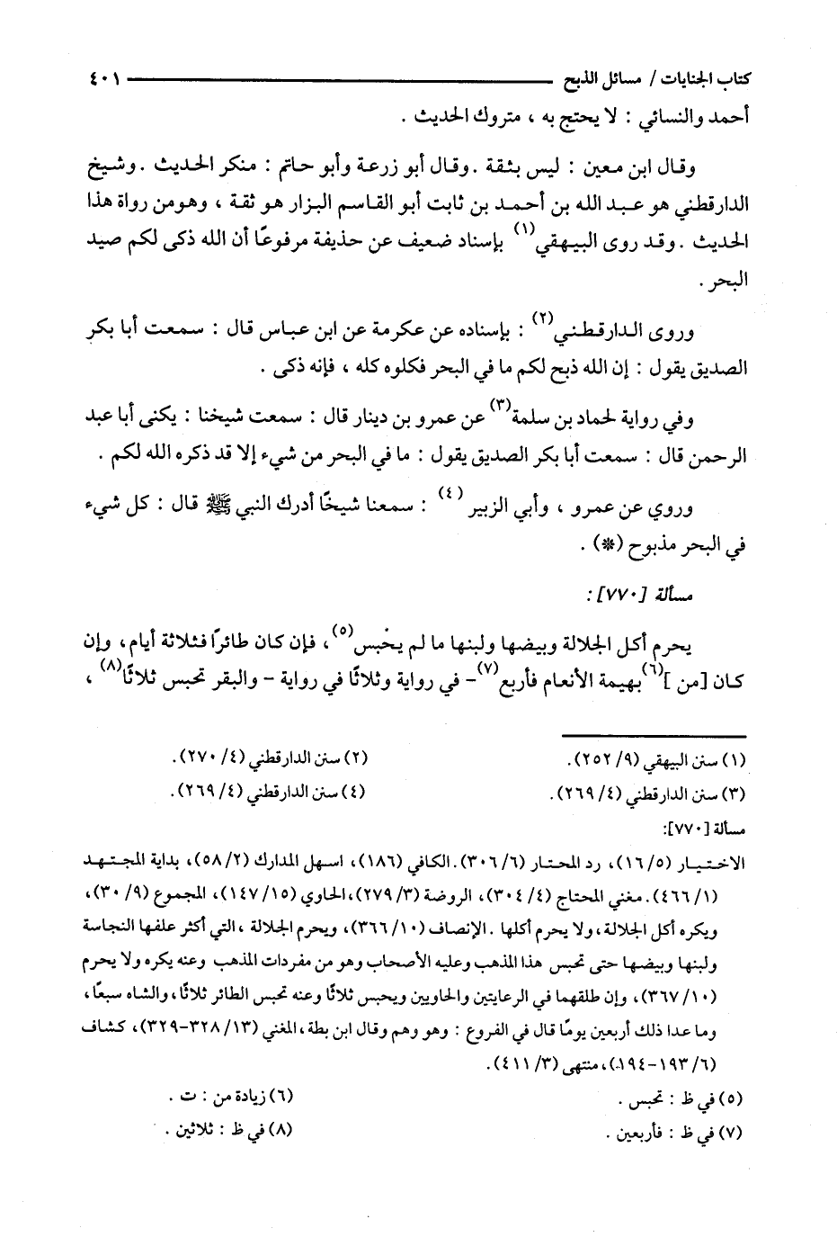 وقال ابن معين : ليس بثقة . وقال أبو زرعة وابو حاتم : منكر الحديث . وشيخ الدارقطني هو عبد الله بن أحمد بن ثابت أبو القاسم البزار هو ثقة ، وهو من رواة هذا الحديث . وقد روى البيهقي ( 1 ) بإسناد ضعيف عن حذيفة مرفوعاً أن الله ذكى لكم صيد البحر .