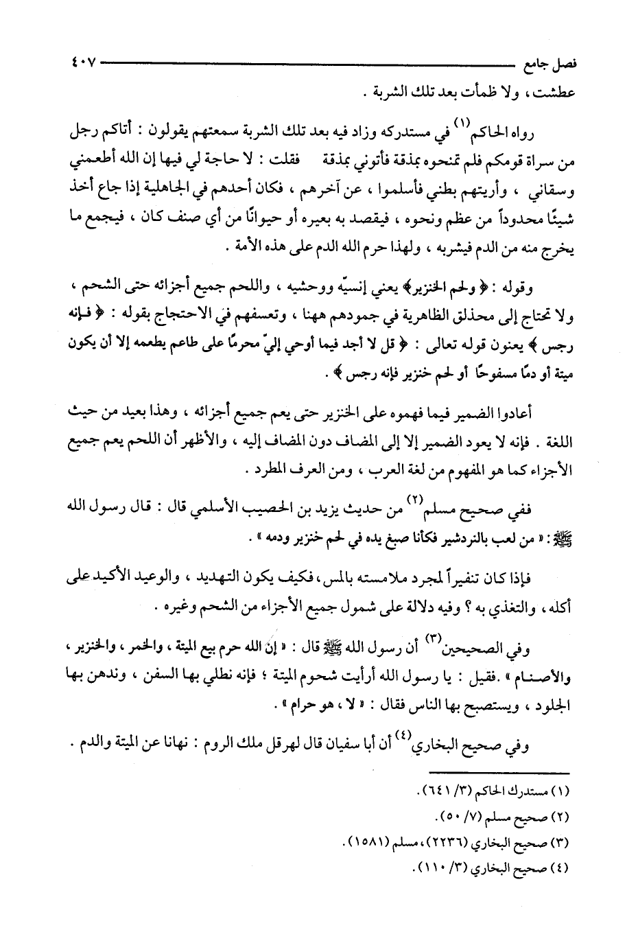 وقوله : ( ^ ولحم الخنزير ) يعني إنسيّه ووحشيه ، واللحم جميع أجزائه حتى الشحم ، ولا تحتاج إلى محذلق الظاهرية في جمودهم ههنا ، تعسفهم في الاحتجاج بقوله : ( ^ فإنه رجس ) يعنون قوله تعالى : ( ^ قل لا أجد فيما أوحى إليّ محرماً على طاعم يطعمه إلا أن يكون ميتة أو دماً مسفوحاً أو لحم خنزير فإنه رجس ) .