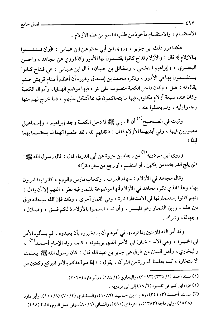 وثبت في الصحيح ( 1 ) أن النبي لما دخل الكعبة وجد إبراهيم ، وإسماعيل مصورين فيها ، وفي أيديهما الأزلام فقال : ' قاتلهم الله ، لقد علموا أنهما لم يستقسما بهما أبداً ' .