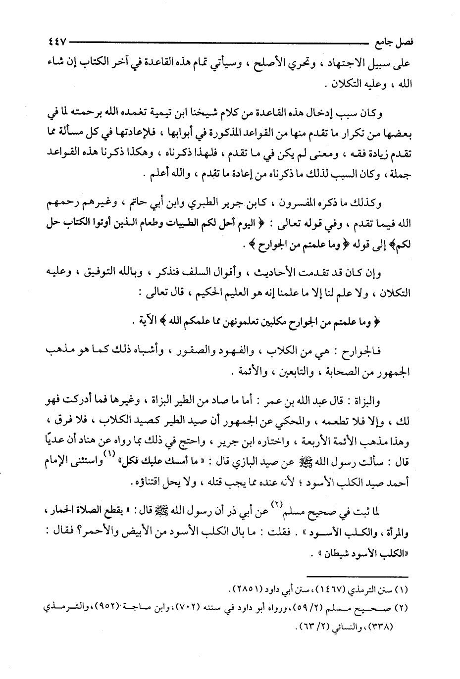 وإن كان قد تقدمت الأحاديث ، وأقوال السلف فنذكر ، وبالله التوفيق ، وعليه التكلان ، ولا علم لنا إلا ما علمنا إنه هو العليم الحكيم ، قال تعالى : ( ^ وما علمتم من الجوارح مكلبين تعلمونهن مما علمكم الله ) الآية .