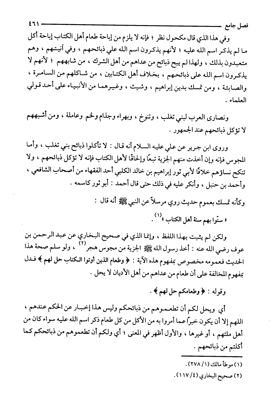 وروى ابن جرير عن علي عليه السلام أنه قال : لا تأكلوا ذبائح بني تغلب ، وأما المجوس فإنه وإن أخذت منهم الجزية تبعاً وإلحاقاً لأهل الكتاب فإنه لا تؤكل ذبائحهم ، ولا تنكح نساؤهم خلافاً لأبي ثور إبراهيم بن خالد الكلبي أحد الفقهاء من أصحاب الشافعي ، وأحمد بن حنبل ، وأنكر عليه في ذلك حتى قال أحمد : أبو ثور كاسمه .