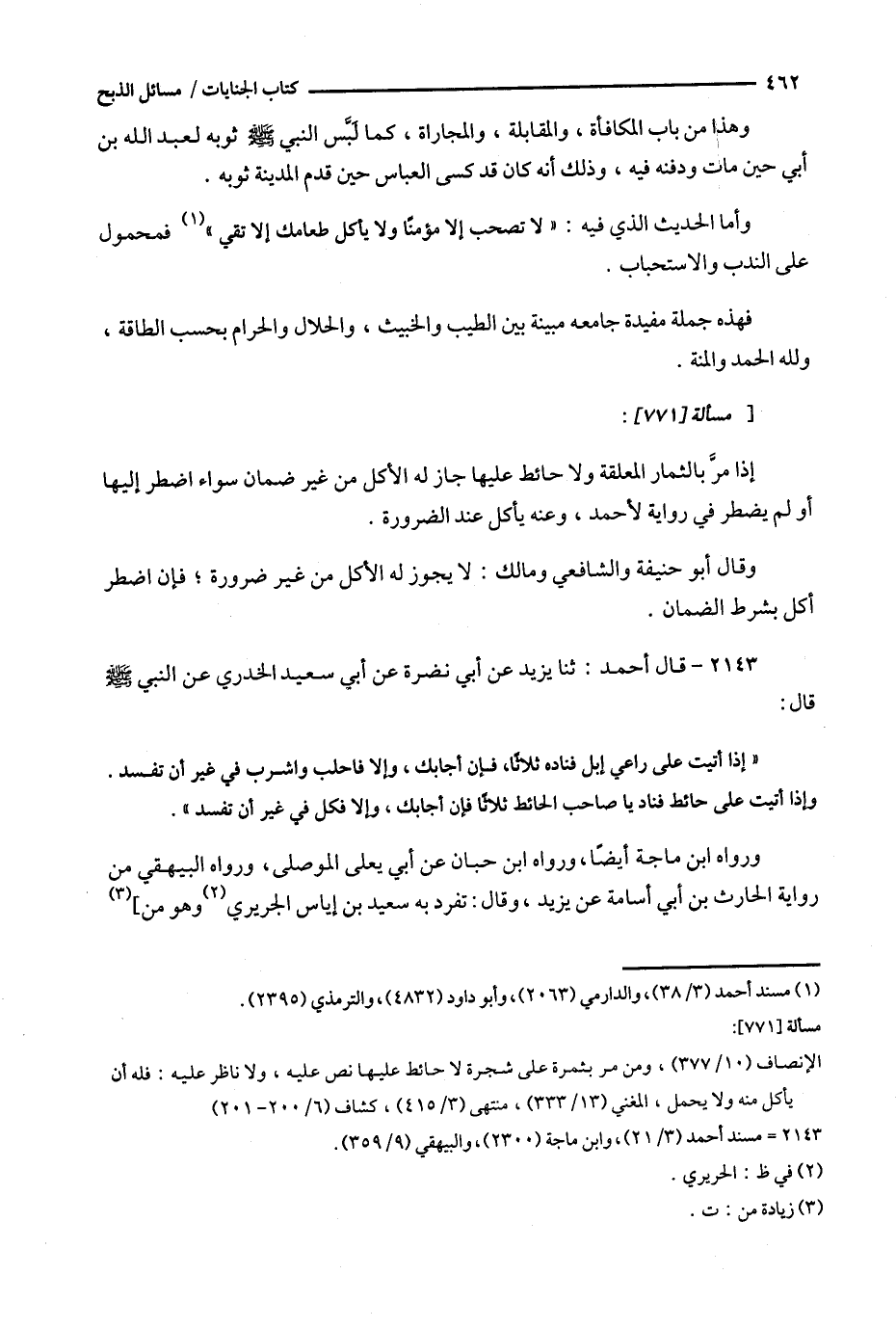 2143 - قال أحمد : ثنا يزيد عن أبي نضرة عن أبي سعيد الخدري عن النبي قال : ' إذا أتيت عل راعي إبل فناده ثلاثاً ، فإن أجابك ، وإلا فاحلب واشرب في غير أن تفسد . وإذا أتيت على حائط فناد يا صاحب الحائط ثلاثاً فإن أجابك ، وإلا فكل في غير أن تفسد ' .