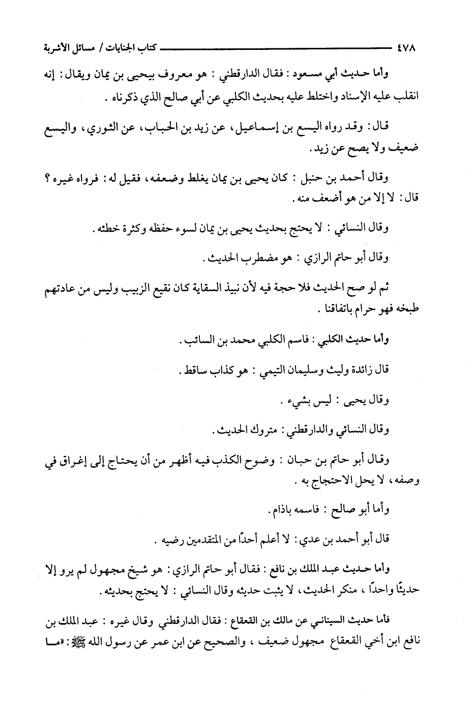 فأما حديث السيناني عن مالك بن القعقاع : فقال الدارقطني وقال غيره : عبد الملك بن نافع ابن أخي القعقاع مجهول ضعيف ، والصحيح عن ابن عمر عن رسول الله : ' ما