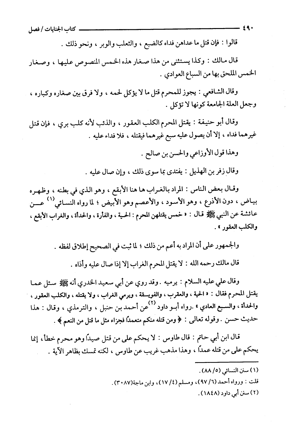 وقال علي عليه السلام : يرميه . وقد روي عن أبي سعيد الخدري أنه سئل عما يقتل المحرم فقال : ' الحية ، والعقرب ، والفويسقة ، ويرمي الغراب ، ولا يقتله ، والكلب العقور ، والحدأة ، والسبع العادي ' . رواه أبو داود ( 2 ) عن أحمد بن حنبل ، والترمذي ، وقال : (1) . وقوله تعالى : ( ^ ومن قتله منكم متعمدا فجزاء مثل ما قتل من النعم ) .