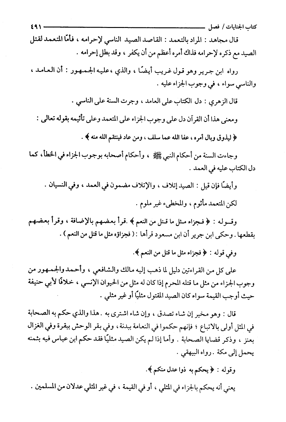 على كل من القراءتين دليل لما ذهب إليه مالك والشافعي ، وأحمد والجمهور من وجوب الجزاء من مثل ما قتله المحرم إذا كان له مثل من الحيوان الإنسي ، خلافاً لأبي حنيفة حيث أوجب القيمة سواء كان الصيد المقتول مثلياً أو غير مثلي .