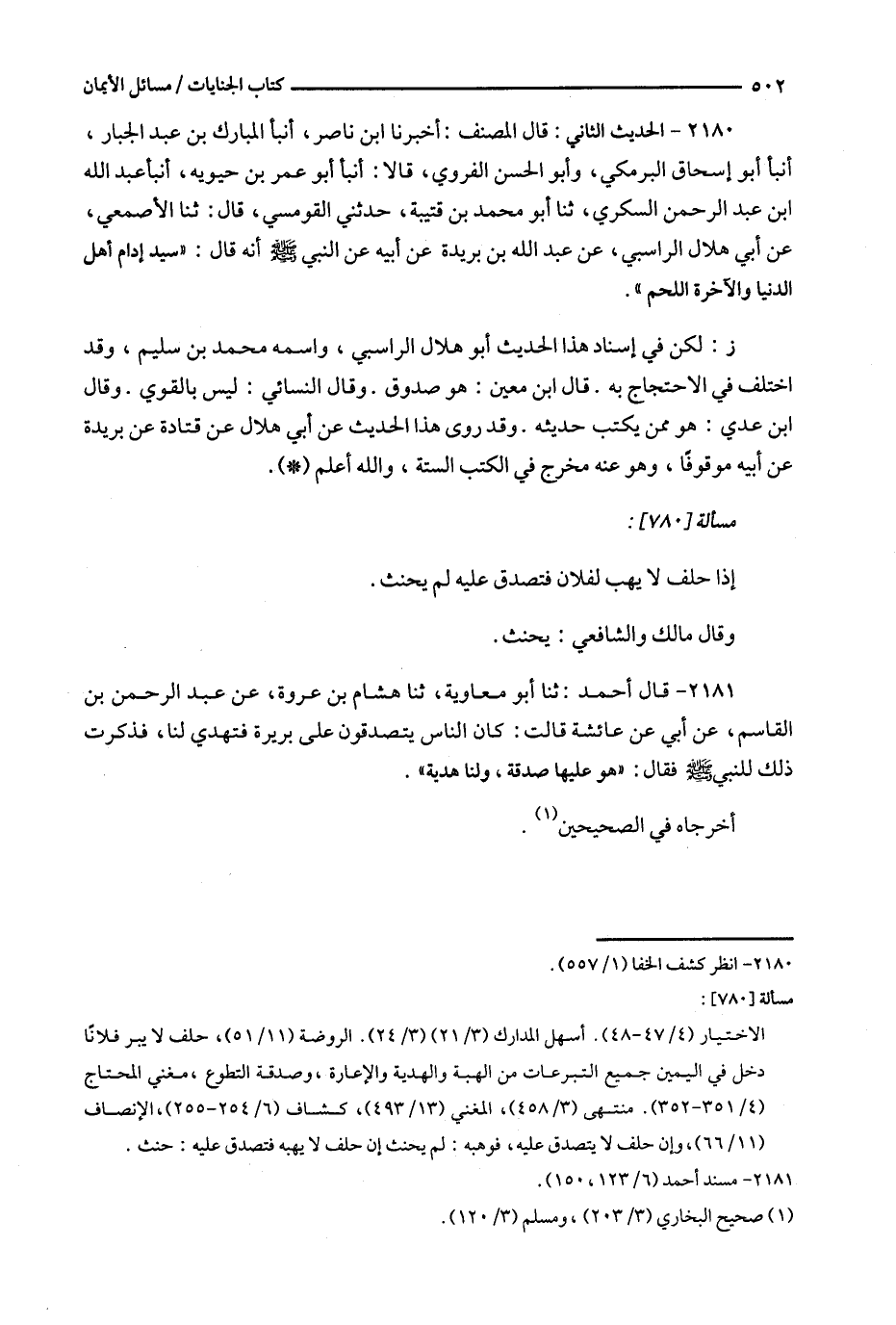 ز : لكن في إسناد هذا الحديث أبو هلال الراسبي ، واسمه محمد بن سليم ، وقد اختلف في الاحتجاج به . قال ابن معين : هو صدوق . وقال النسائي : ليس بالقوي . وقال ابن عدي : هو ممن يكتب حديثه . وقد روى هذا الحديث عن أبي هلال عن قتادة عن بريدة عن أبيه موقوفاً ، وهو عنه مخرج في الكتب الستة ، والله أعلم .