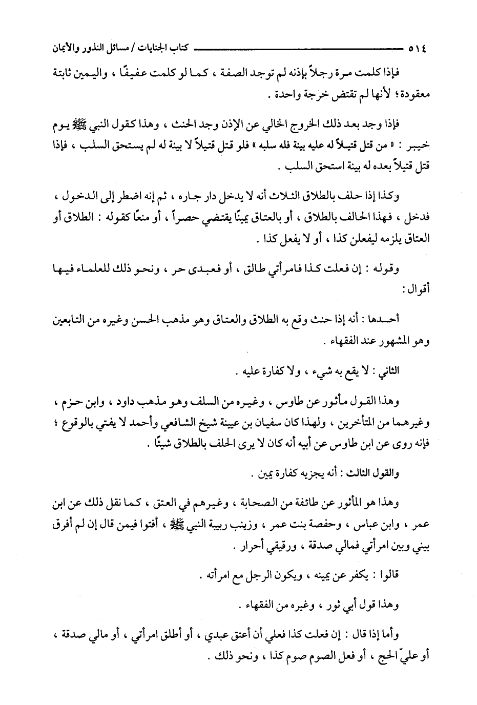 وهذا هو المأثور عن طائفة من الصحابة ، وغيرهم في العتق ، كما نقل ذلك عن ابن عمر ، وابن عباس ، وحفصة بنت عمر ، وزينب ربيبة النبي ، أفتوا فيمن قال إن لم أفرق بيني وبين امرأتي فمالي صدقة ، ورقيقي أحرار .