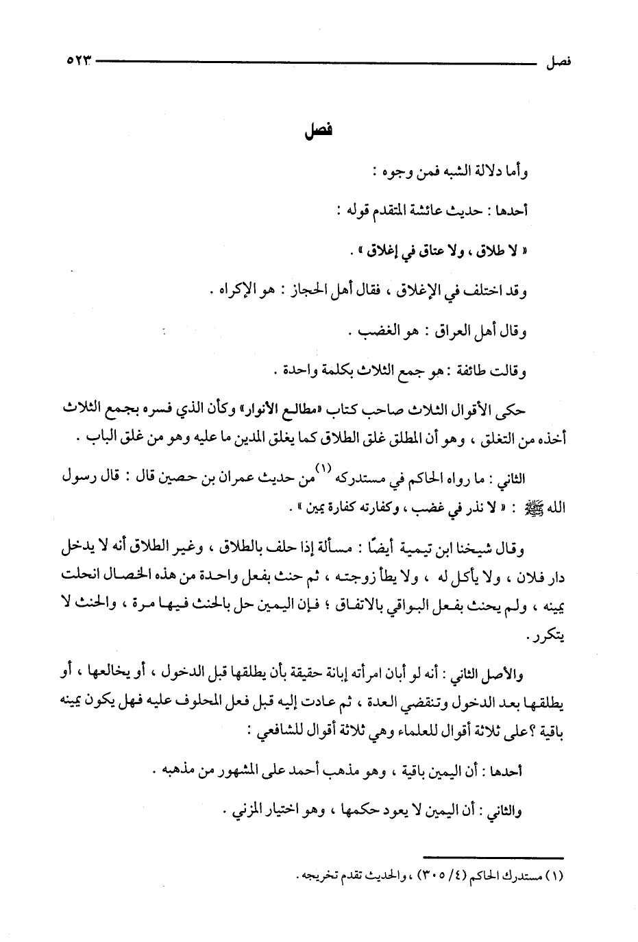 الثاني : ما رواه الحاكم في مستدركه ( 1 ) من حديث عمران بن حصين قال : قال رسول الله : ' لانذر في غضب ، وكفارته كفارة يمين ' .