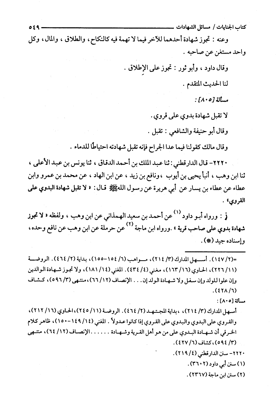 ز : ورواه أبو داود ( 1 ) عن أحمد بن سعيد الهمذاني عن أبن وهب ، ولفظه ' لا تجوز شهادة بدوي على صاحب قرية ' . ورواه ابن ماجة ( 2 ) عن حرملة عن ابن وهب عن نافع وحده ، وإسناده جيد .