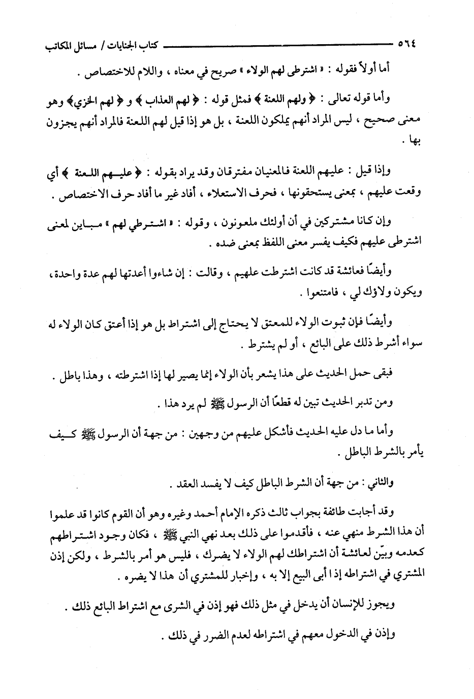وأيضاً فإن ثبوت الولاء للمعتق لا يحتاج إلى اشتراط بل هو إذا أعتق كان الولاء له سواء أشرط ذلك على البائع ، أو لم يشترط .
