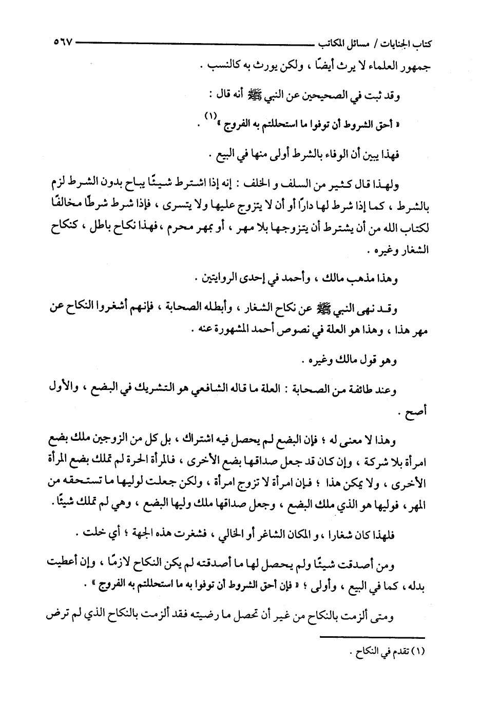 وقد ثبت في الصحيحين عن النبي أنه قال : ' أحق الشروط أن توفوا ما استحللتم به الفروج ' ( 1 ) .