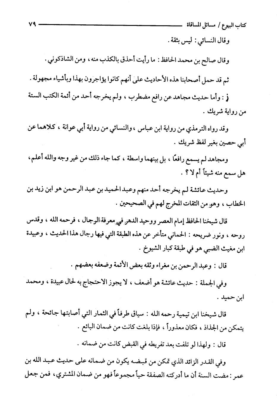 قال شيخنا الحافظ إمام العصر ووحيد الدهر في معرفة الرجال ، فرحمه الله ، وقدس روحه ، ونور ضريحه : الحماني متأخر عن هذه الطبقة التي فيها رجال هذا الحديث ، وعبيدة ابن مغيث الضبي هو في طبقة كبار الشيوخ .
