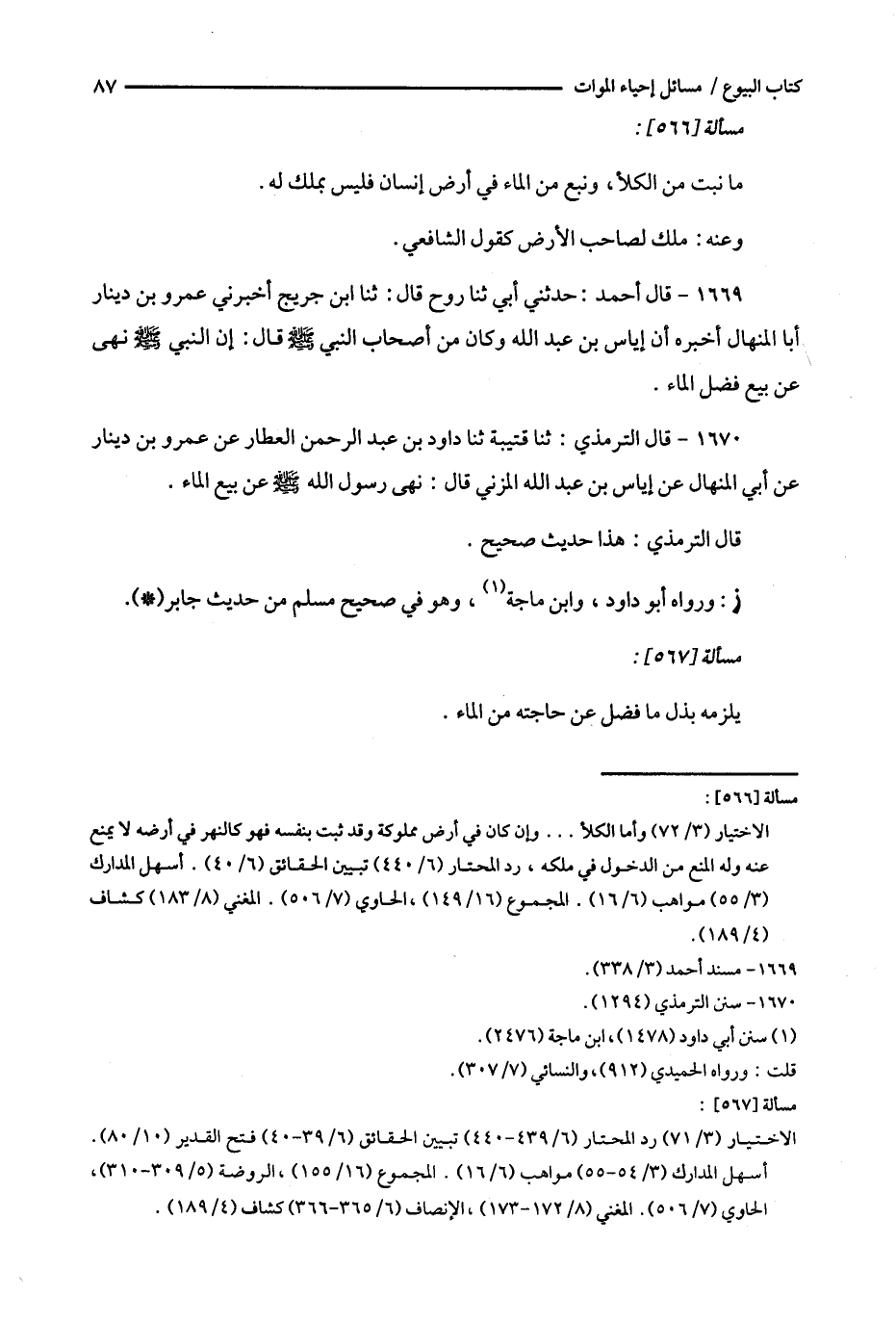1670 - قال الترمذي : ثنا قتيبة ثنا داود بن عبد الرحمن العطار عن عمرو بن دينار عن أبي المنهال عن إياس بن عبد الله المزني قال : نهى رسول الله عن بيع الماء .