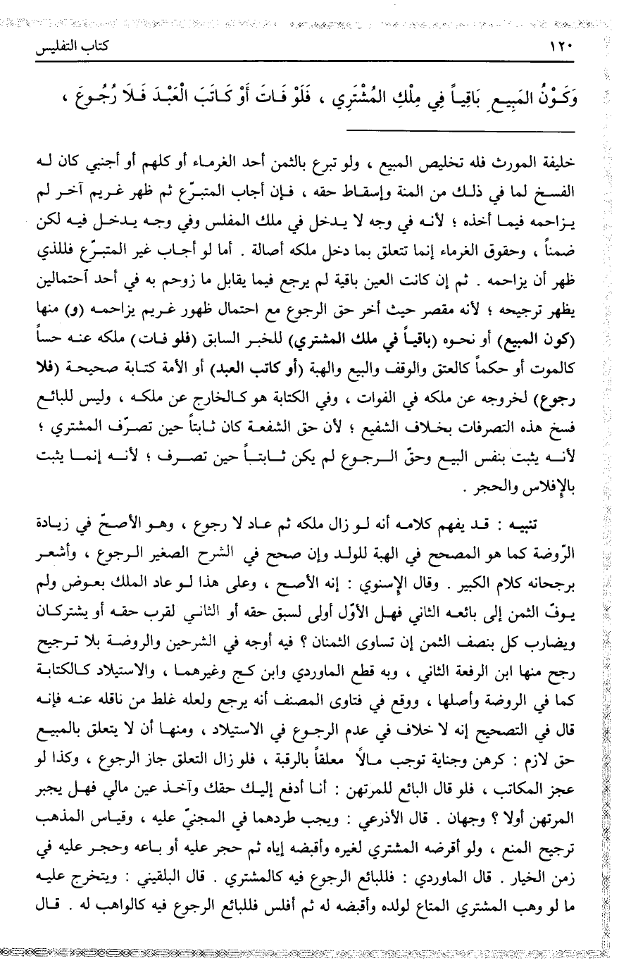 وَكَوْنُ الْمَبِيعِ بَاقِيًا فِي مِلْكِ الْمُشْتَرِي، فَلَوْ فَاتَ أَوْ كَاتَبَ الْعَبْدَ فَلَا رُجُوعَ.