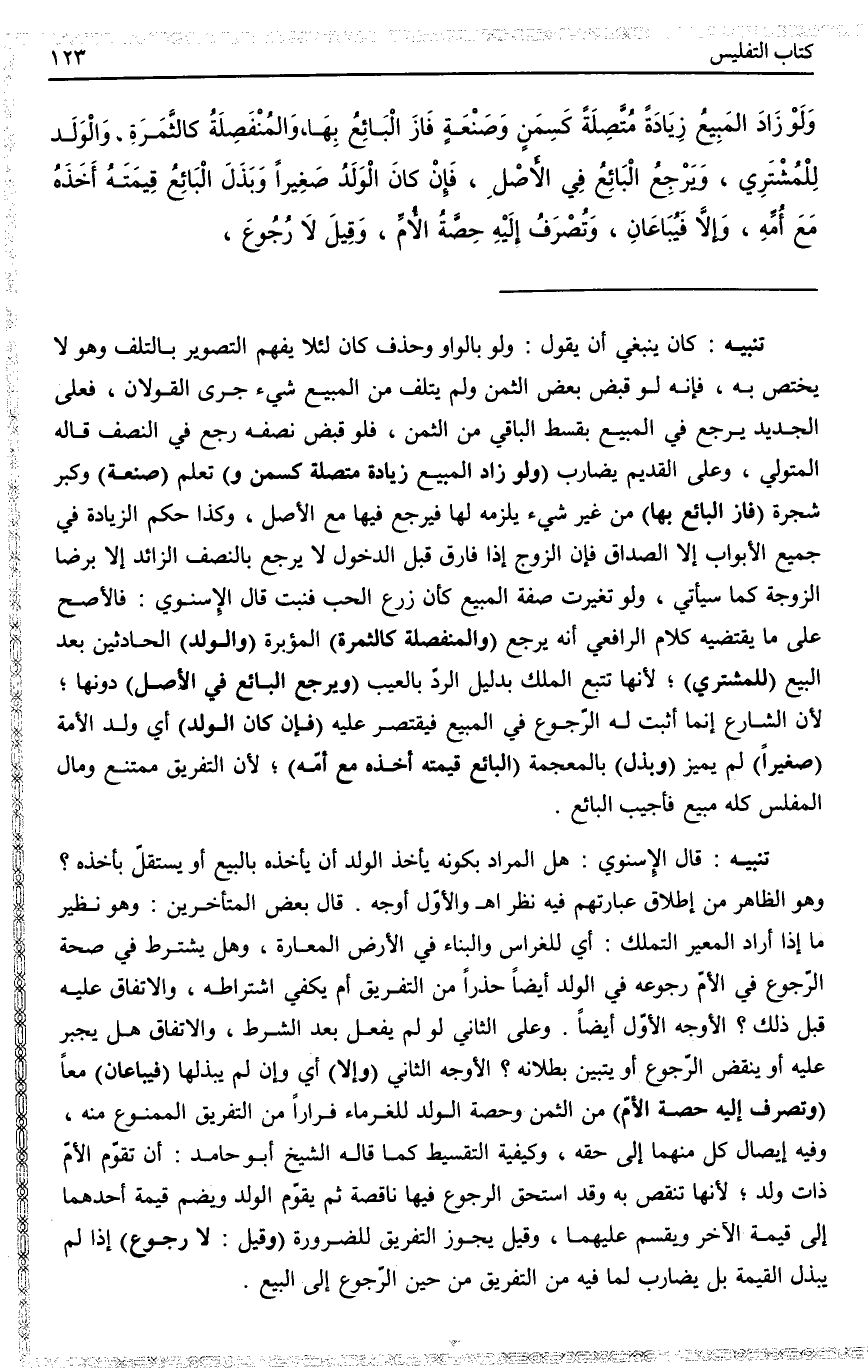 تَنْبِيهٌ: قَالَ الْإِسْنَوِيُّ: هَلْ الْمُرَادُ بِكَوْنِهِ يَأْخُذُ الْوَلَدَ أَنْ يَأْخُذَهُ بِالْبَيْعِ أَوْ يَسْتَقِلَّ بِأَخْذِهِ؟ وَهُوَ الظَّاهِرُ مِنْ إطْلَاقِ عِبَارَتِهِمْ فِيهِ نَظَرٌ اهـ.