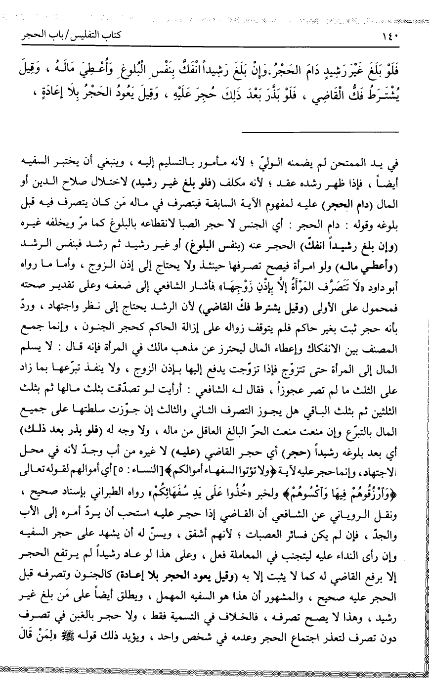 وَيَنْبَغِي أَنْ يُخْتَبَرَ السَّفِيهُ أَيْضًا، فَإِذَا ظَهَرَ رُشْدُهُ عَقَدَ؛ لِأَنَّهُ مُكَلَّفٌ (فَلَوْ بَلَغَ غَيْرَ رَشِيدٍ) لِاخْتِلَالِ صَلَاحِ الدِّينِ أَوْ الْمَالِ (دَامَ الْحَجْرُ) عَلَيْهِ لِمَفْهُومِ الْآيَةِ السَّابِقَةِ فَيَتَصَرَّفُ فِي مَالِهِ مَنْ كَانَ يَتَصَرَّفُ فِيهِ قَبْلَ بُلُوغِهِ وَقَوْلُهُ: دَامَ الْحَجْرُ: أَيْ الْجِنْسُ لَا حَجْرُ الصِّبَا لِانْقِطَاعِهِ بِالْبُلُوغِ كَمَا مَرَّ وَيَخْلُفُهُ غَيْرُهُ (وَإِنْ بَلَغَ رَشِيدًا انْفَكَّ) الْحَجْرُ عَنْهُ (بِنَفْسِ الْبُلُوغِ) أَوْ غَيْرَ رَشِيدٍ ثُمَّ رَشَدَ فَبِنَفْسِ الرُّشْدِ (وَأُعْطِيَ مَالَهُ) وَلَوْ امْرَأَةً فَيَصِحُّ تَصَرُّفُهَا حِينَئِذٍ وَلَا يَحْتَاجُ إلَى إذْنِ الزَّوْجِ، وَأَمَّا مَا رَوَاهُ أَبُو دَاوُد «لَا تَتَصَرَّفُ الْمَرْأَةُ إلَّا بِإِذْنِ زَوْجِهَا» فَأَشَارَ الشَّافِعِيُّ إلَى ضَعْفِهِ وَعَلَى تَقْدِيرِ صِحَّتِهِ فَمَحْمُولٌ عَلَى الْأَوْلَى (وَقِيلَ: يُشْتَرَطُ فَكُّ الْقَاضِي) لِأَنَّ الرُّشْدَ يَحْتَاجُ إلَى نَظَرٍ وَاجْتِهَادٍ، وَرُدَّ بِأَنَّهُ حَجْرٌ ثَبَتَ بِغَيْرِ حَاكِمٍ فَلَمْ يَتَوَقَّفْ زَوَالُهُ عَلَى إزَالَةِ الْحَاكِمِ كَحَجْرِ الْجُنُونِ، وَإِنَّمَا جَمَعَ الْمُصَنِّفُ بَيْنَ الِانْفِكَاكِ وَإِعْطَاءِ الْمَالِ لِيَحْتَرِزَ عَنْ مَذْهَبِ مَالِكٍ فِي الْمَرْأَةِ فَإِنَّهُ قَالَ: لَا يُسَلَّمُ الْمَالُ إلَى الْمَرْأَةِ حَتَّى تَتَزَوَّجَ فَإِذَا تَزَوَّجَتْ يُدْفَعُ إلَيْهَا بِإِذْنِ الزَّوْجِ، وَلَا يَنْفُذُ تَبَرُّعُهَا بِمَا زَادَ عَلَى الثُّلُثِ مَا لَمْ تَصِرْ عَجُوزًا، فَقَالَ لَهُ الشَّافِعِيُّ: أَرَأَيْت لَوْ تَصَدَّقَتْ بِثُلُثِ مَالِهَا ثُمَّ بِثُلُثِ الثُّلُثَيْنِ ثُمَّ بِثُلُثِ الْبَاقِي هَلْ يَجُوزُ التَّصَرُّفُ الثَّانِي وَالثَّالِثِ إنْ جَوَّزْت سُلْطَتَهَا عَلَى جَمِيعِ الْمَالِ بِالتَّبَرُّعِ وَإِنْ مَنَعْت مَنَعْت الْحُرَّ الْبَالِغَ الْعَاقِلَ مِنْ مَالِهِ، وَلَا وَجْهَ لَهُ (فَلَوْ بَذَّرَ بَعْدَ ذَلِكَ) أَيْ بَعْدَ بُلُوغِهِ رَشِيدًا (حُجِرَ) أَيْ حَجَرَ الْقَاضِي (عَلَيْهِ) لَا غَيْرُهُ مِنْ أَبٍ وَجَدٍّ لِأَنَّهُ فِي مَحَلِّ الِاجْتِهَادِ، وَإِنَّمَا حُجِرَ عَلَيْهِ لِآيَةِ {وَلا تُؤْتُوا السُّفَهَاءَ أَمْوَالَكُمُ} [النساء: 5] أَيْ أَمْوَالَهُمْ لِقَوْلِهِ تَعَالَى {وَارْزُقُوهُمْ فِيهَا وَاكْسُوهُمْ} [النساء: 5] وَلِخَبَرِ «خُذُوا عَلَى يَدِ سُفَهَائِكُمْ» رَوَاهُ الطَّبَرَانِيُّ بِإِسْنَادٍ صَحِيحٍ، وَنَقَلَ الرُّويَانِيُّ عَنْ الشَّافِعِيِّ أَنَّ الْقَاضِيَ إذَا حَجَرَ عَلَيْهِ اُسْتُحِبَّ أَنْ يَرُدَّ أَمْرَهُ إلَى الْأَبِ وَالْجَدِّ، فَإِنْ لَمْ يَكُنْ فَسَائِرُ الْعَصَبَاتِ؛ لِأَنَّهُمْ أَشْفَقُ.