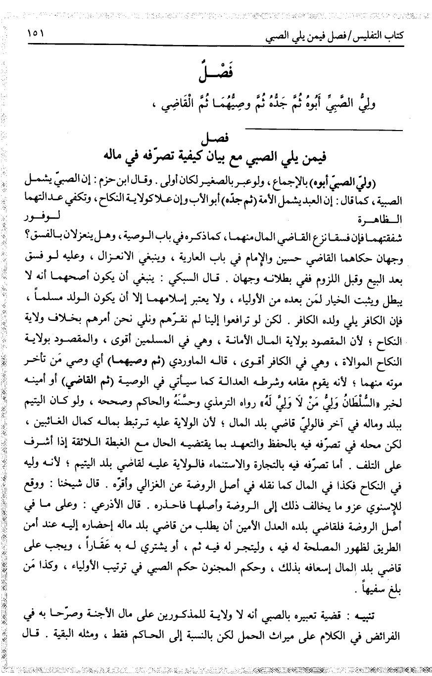 ـــــــــــــــــــــــــــــQ [فَصْلٌ فِيمَنْ يَلِي الصَّبِيَّ مَعَ بَيَانِ كَيْفِيَّةِ تَصَرُّفِهِ فِي مَالِهِ]