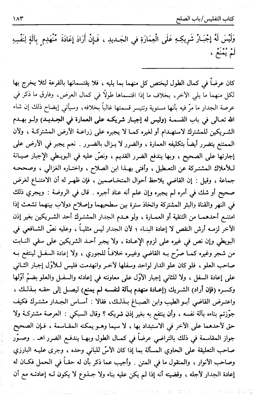 لَيْسَ لَهُ إجْبَارُ شَرِيكِهِ عَلَى الْعِمَارَةِ فِي الْجَدِيدِ.