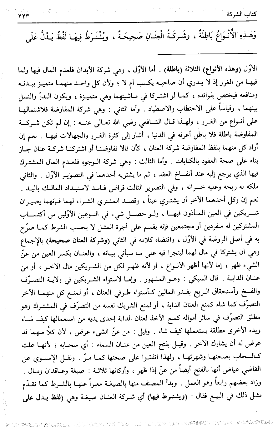 وَشَرِكَةُ الْعِنَانِ صَحِيحَةٌ.